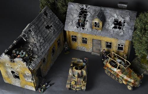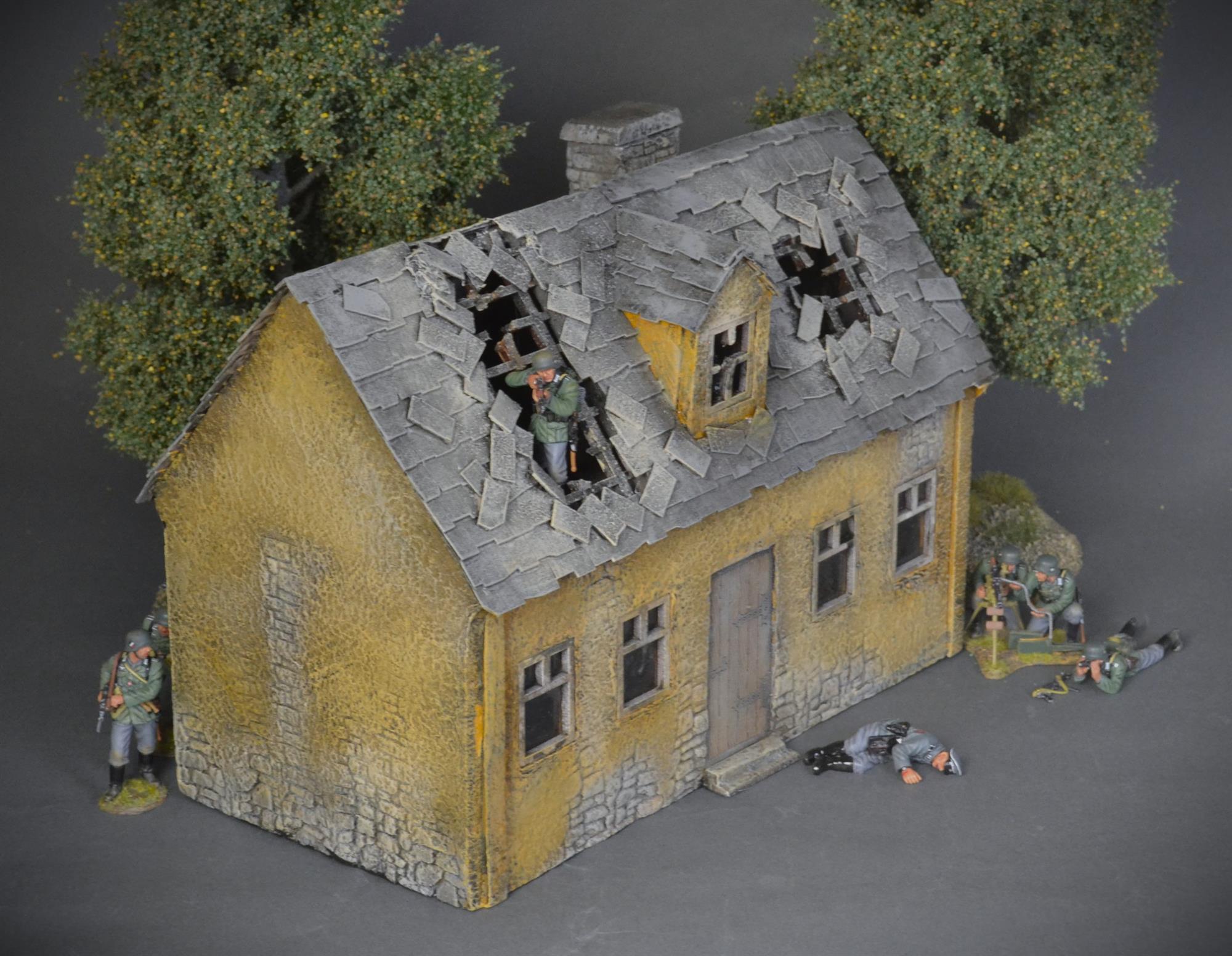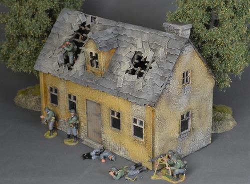 The house has been hit by gunfire, grenades and mortar shells, figures can be placed on the attic.