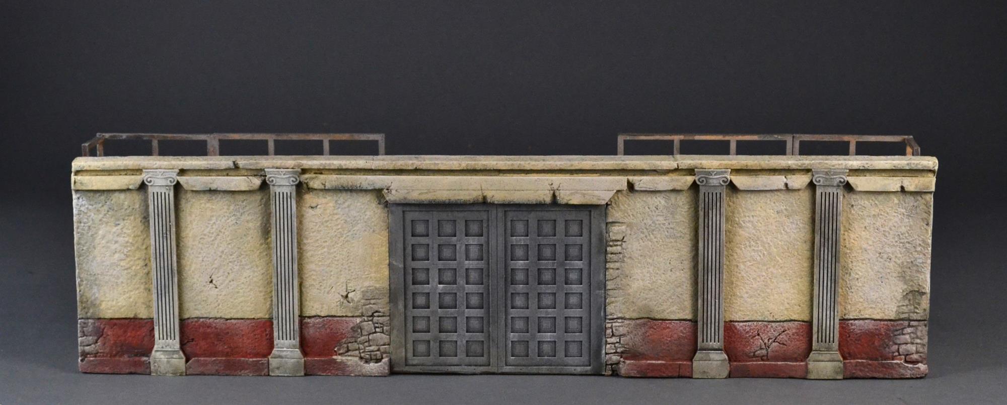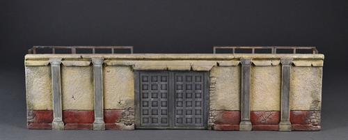 Roman houses have a red line at the bottom for aesthetic and functional reasons, often created by using red clay tiles for the lower part of the walls or by applying a red plaster or whitewash to protect the lower parts of the wall from dirt and moisture. This practical use of red-toned materials was also a common visual element in Roman architecture, which often featured decorative plasterwork and painted walls in different colors.
