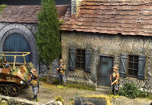 Fransk bondehus med lade - diorama, kan bruge igennem mange historiske sammenhæng.