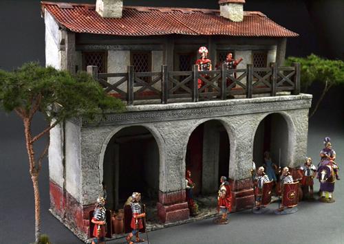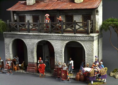 Antikke romerske butiksfacader, kendt som tabernae (flertal for taberna), var typisk simple, enkeltværelses rum, der åbnede direkte ud til gaden.