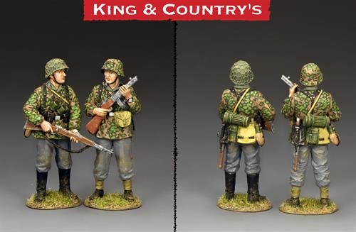 Disse to soldater står og venter på signalet om at rykke frem. Bemærk, hvordan den ene bærer en erobret PPSh-41 maskinpistol, mens hans kammerat har den almindelige K98-riffel.