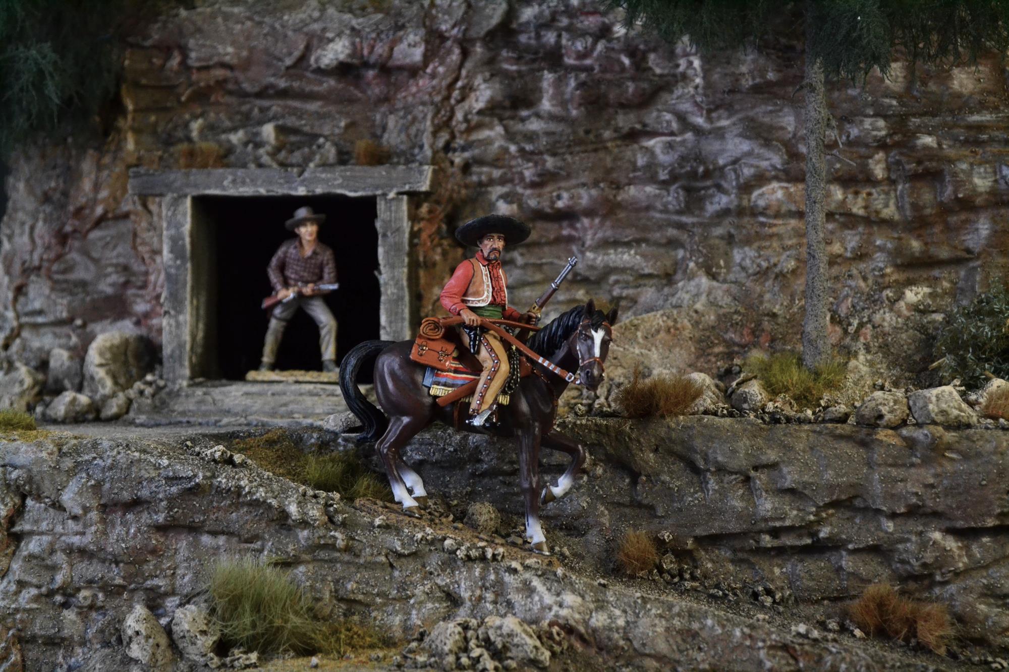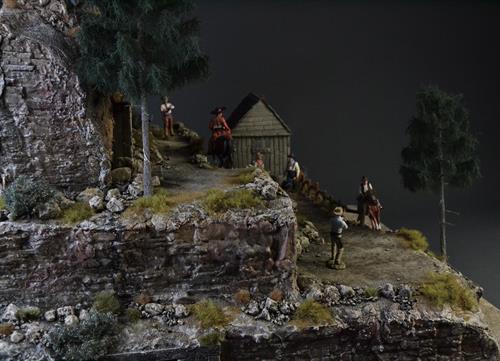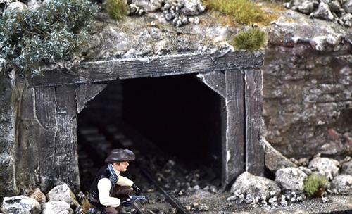 “Blood, Dust, and Gold: The Mine That Changed the West.” the diorama includes 4 mines, one mine with rail tracks, 1 well and a house