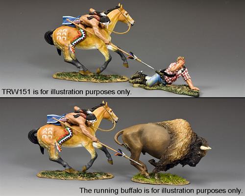 Here is one such example... A young warrior and his horse have misjudged their approach to an already wounded and enraged buffalo... The angry beast turns suddenly goring the horse's belly and bringing it down on top of its rider... The buffalo is now about to trample both horse and Indian as they lie trapped and helpless on the ground... Unless someone can rescue them.
