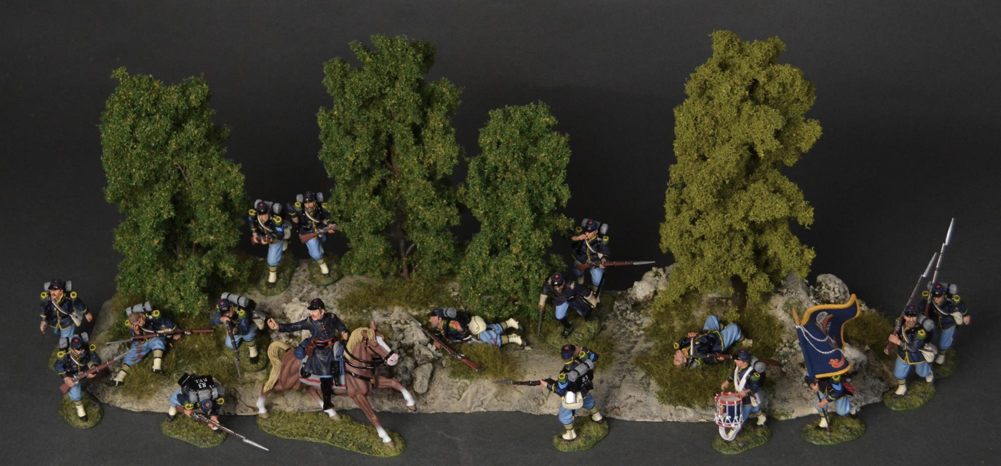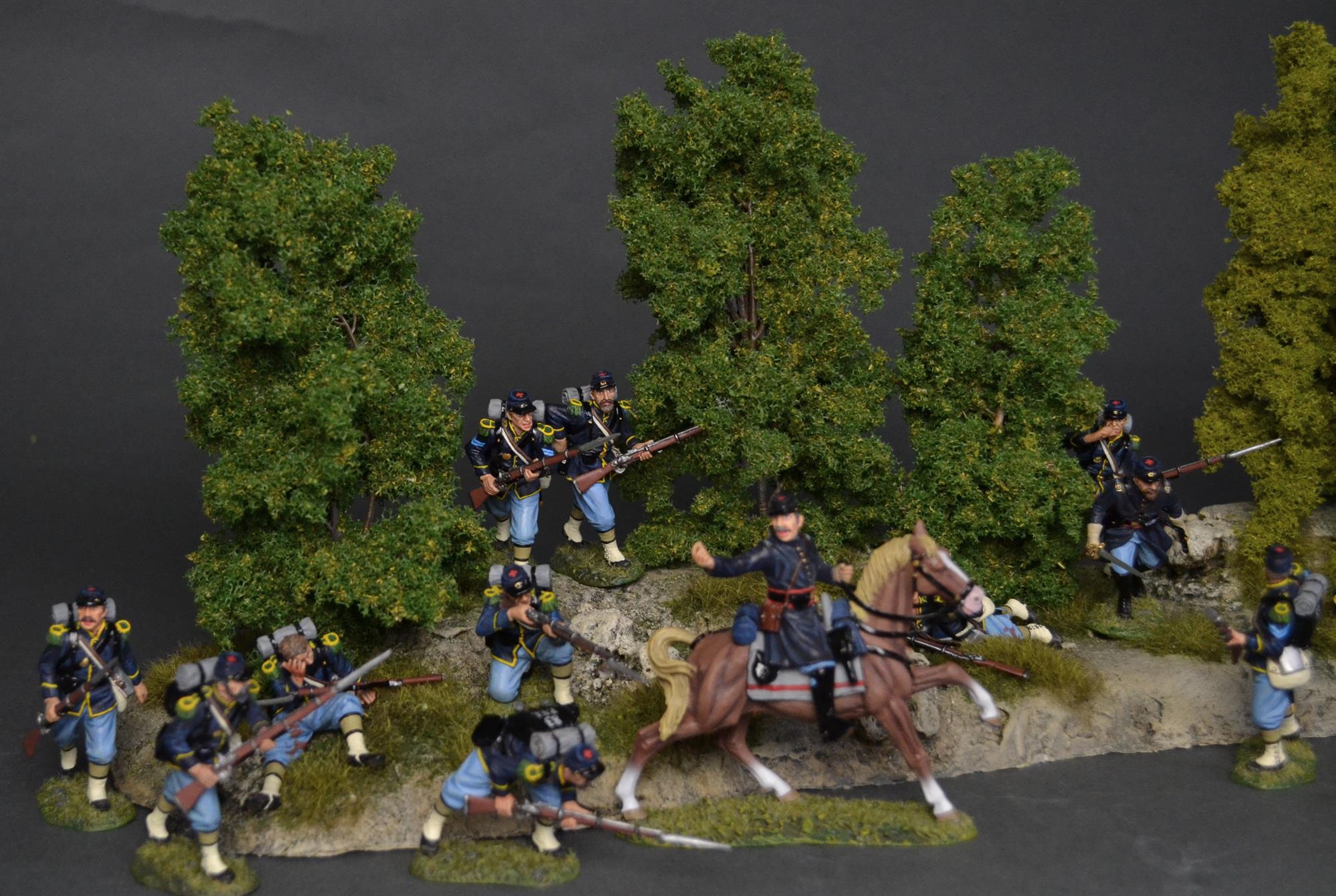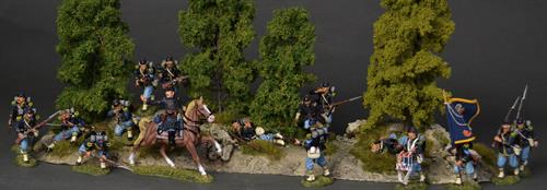 Truppen tauchen aus der Dunkelheit des Waldrandes auf und greifen an…