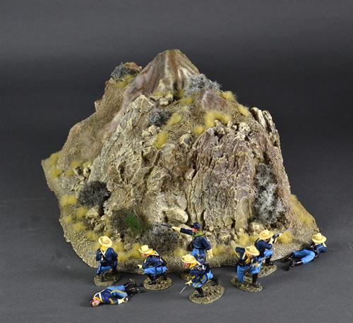 Double-sided Rocky Mountain with withered grass and desert bushes (product may vary)