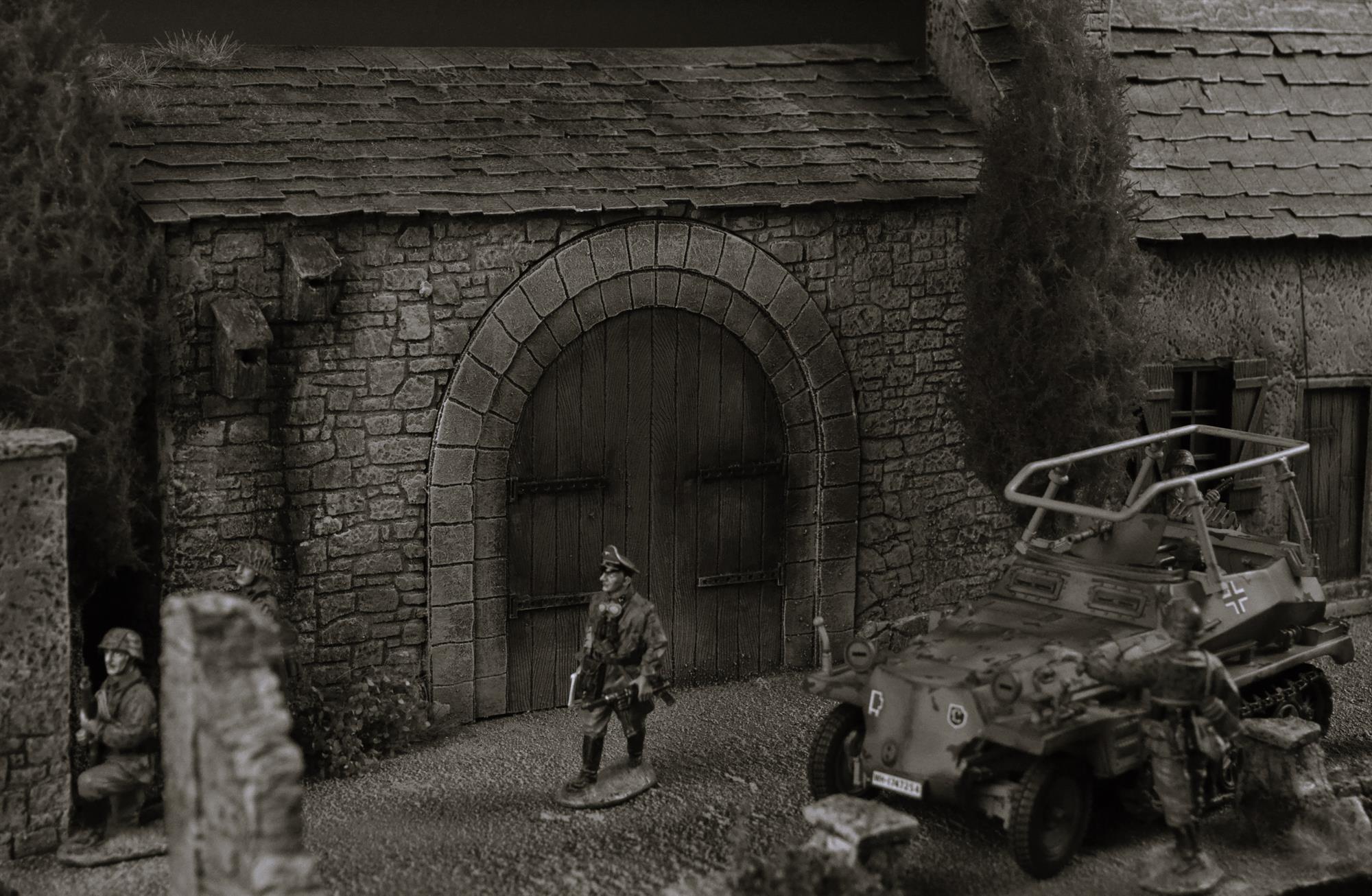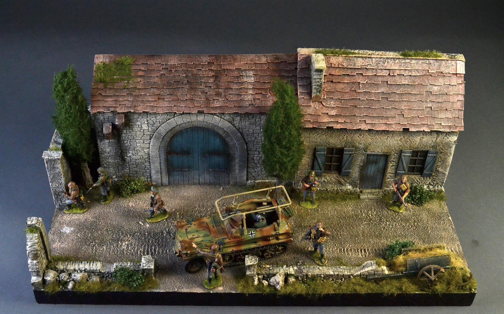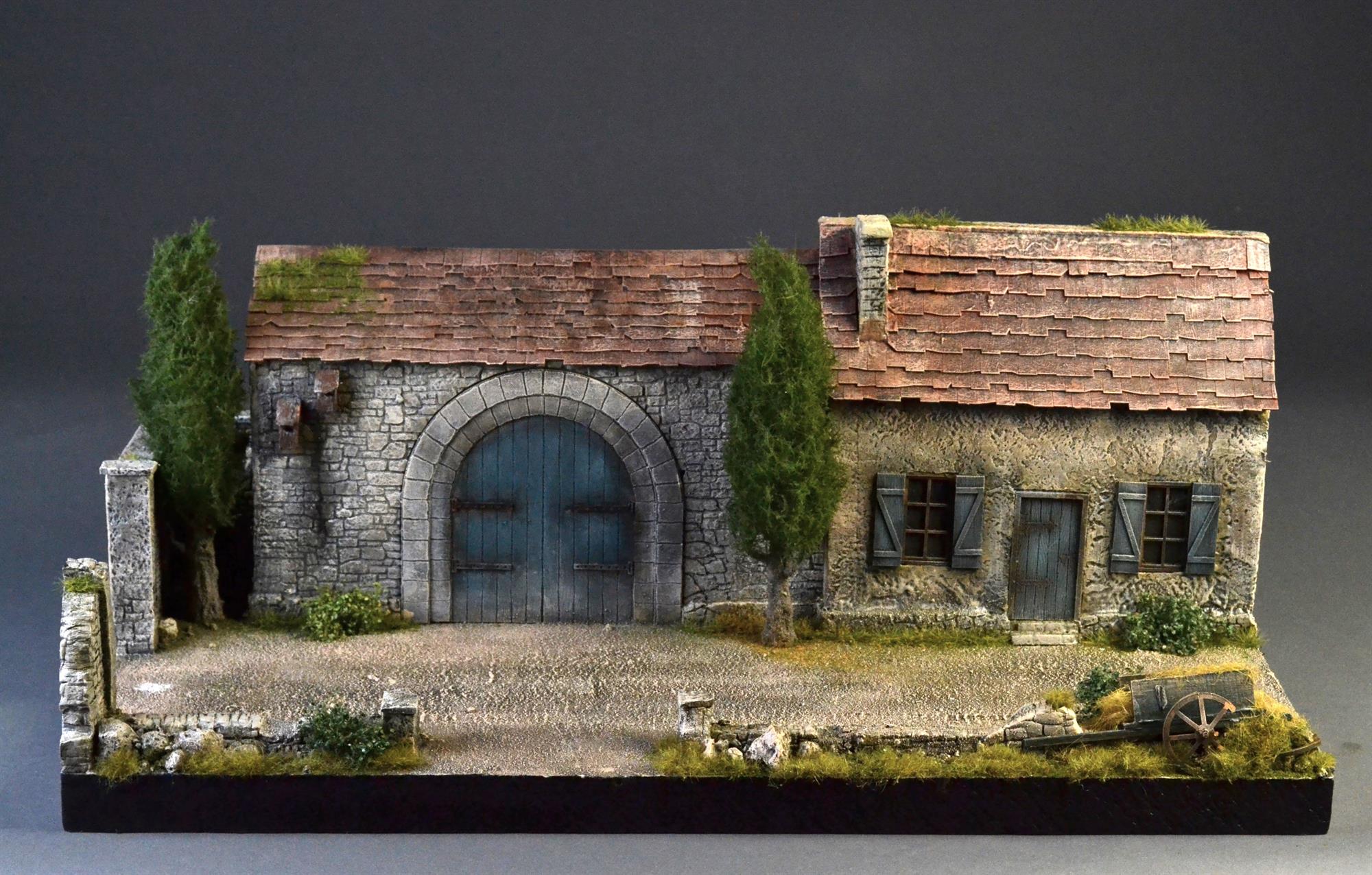 Fransk bondehus med lade - diorama, kan bruge igennem mange historiske sammenhæng.